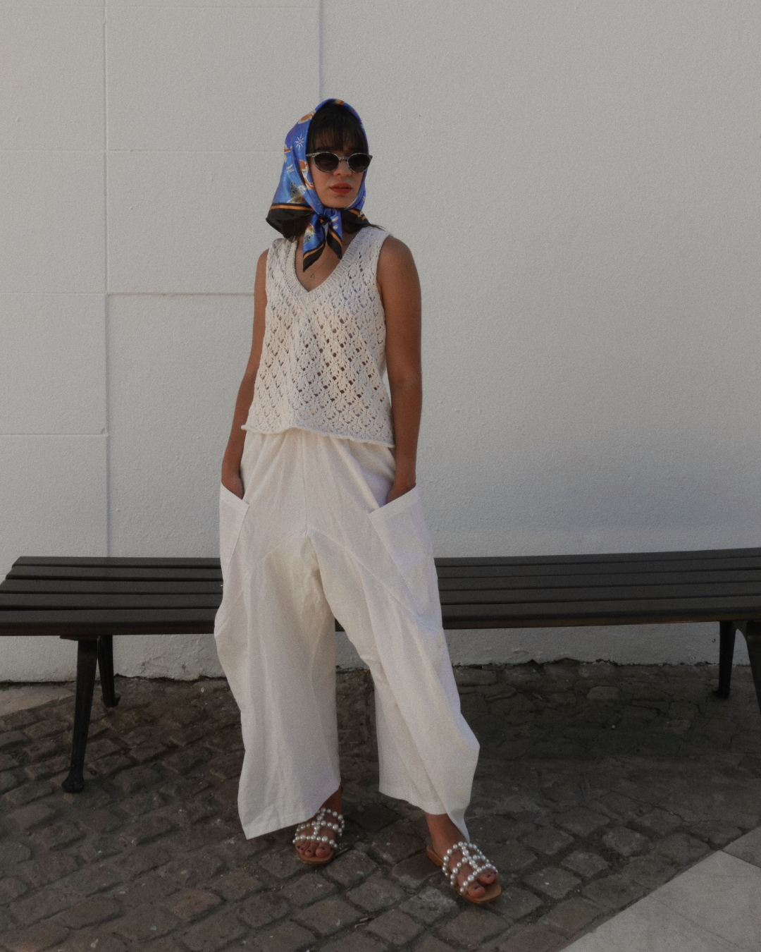 Cada prenda se crea a partir de ovillos, en lugar de rollos de tela, y solo compramos lo necesario para cada pieza. Nuestro proceso no genera desperdicio de Hilado. Cada prenda de Andy Brines está diseñada para durar toda la vida y destinada a usarse una y otra vez.
